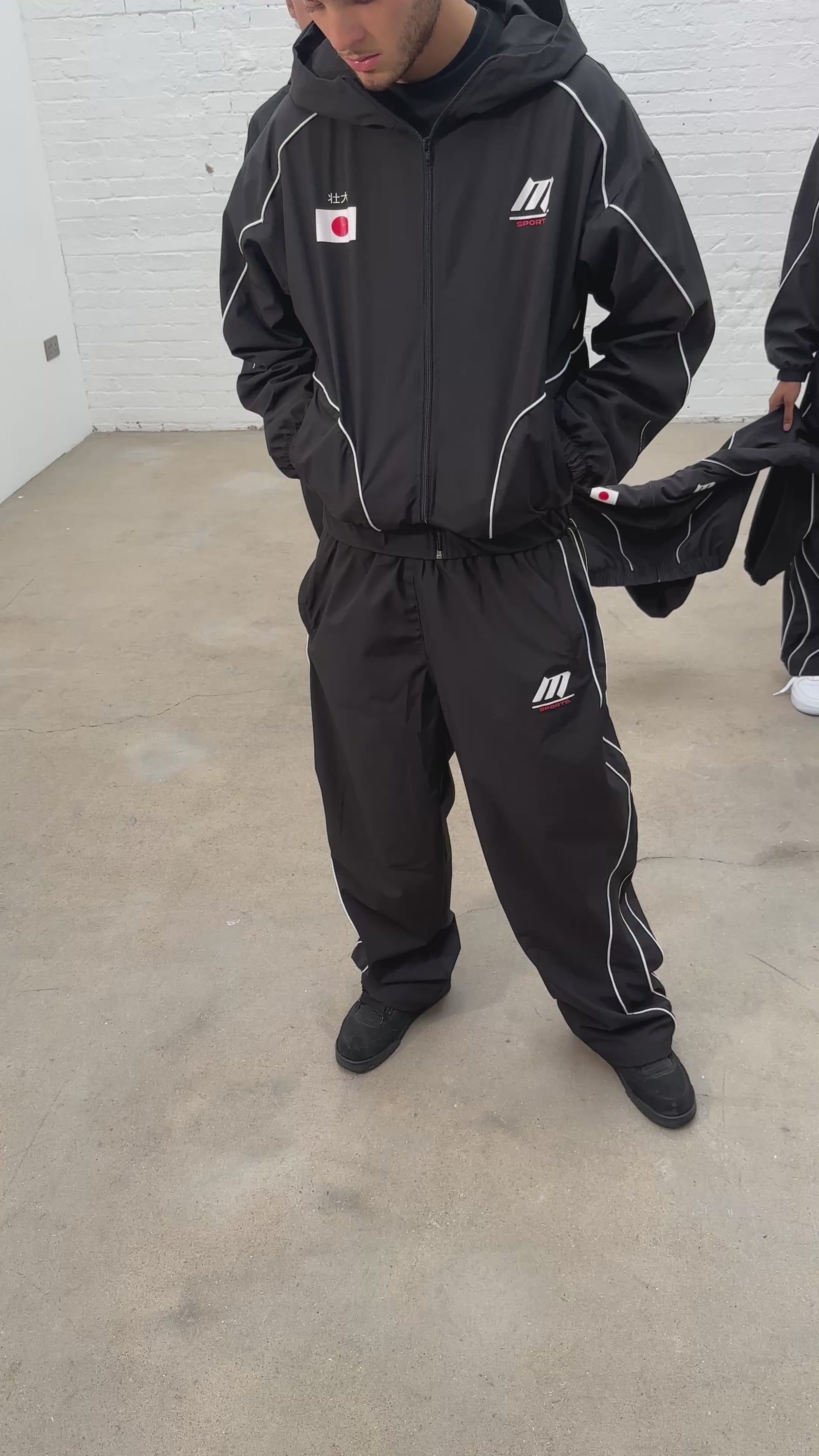 MALE MODEL : 6’0 WEARING SIZE MEDIUM TRACK JACKET.
